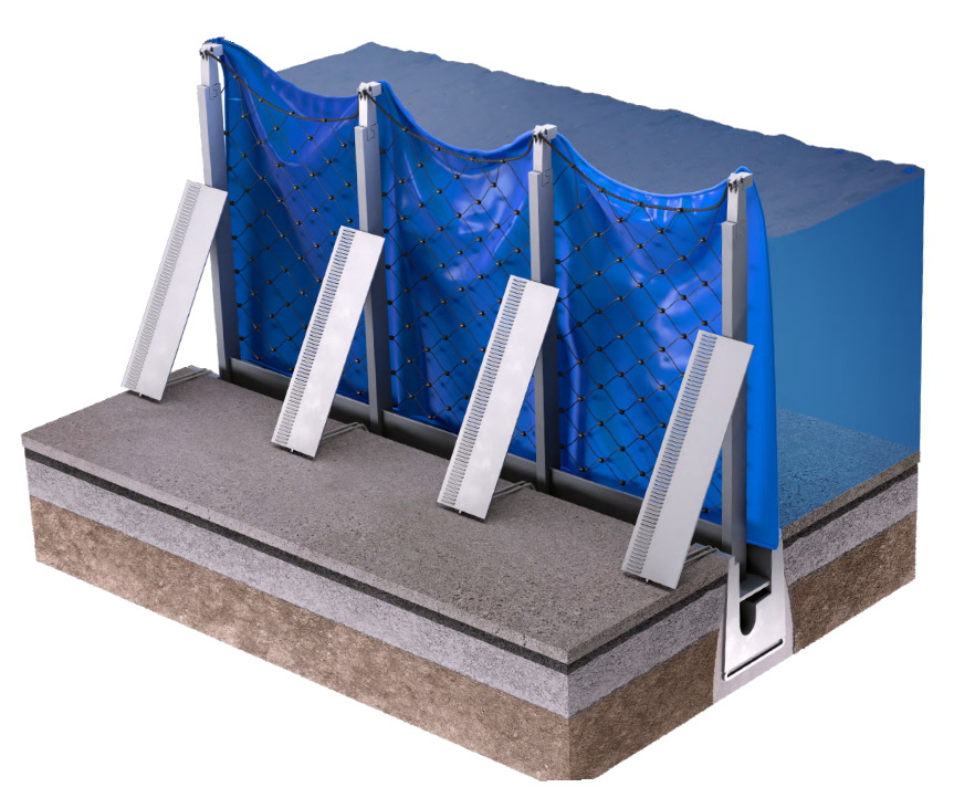Die Aquawand von AQUABURG Hochwasserschutz ist ein innovatives, schnell aufbaubares System, das ohne Schrauben oder Hilfsmittel und mit wenig Personal auskommt. Alle Komponenten werden einfach ineinander gesteckt und verbolzt, was eine sichere Verbindung garantiert. Das System wird am Einsatzort gelagert und nach Gebrauch wieder in der Bodenwanne verstaut.